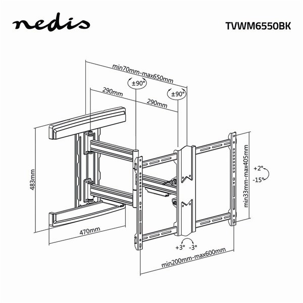 Nedis TVWM6550BK 37"- 80" LCD TV / monitor fali tartókonzol, maximum 50 kg, forgatható / dönthető, 3 forgáspont