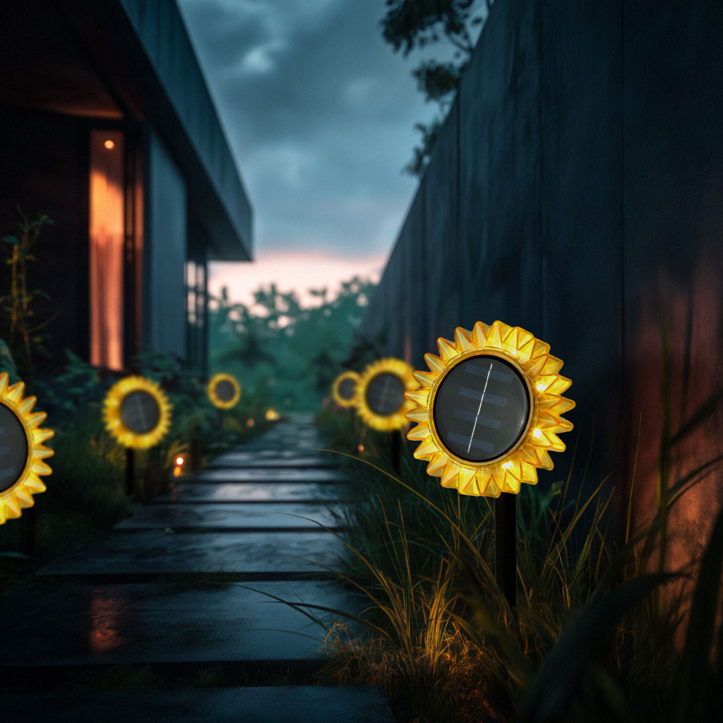 Ez a dekoratív szolár napraforgó lámpa hangulatossá varázsolja kertjét vagy teraszát. A többféleképpen rögzíthető kialakításnak köszönhetően leszúrhatóként és felakasztva is használható, így könnyedén illeszkedik bármilyen kültéri környezetbe. A beépített napelem napközben hatékonyan gyűjti a napfényt, melyből energiát biztosít az esti melegfehér LED világításhoz. A lámpa automatikusan kapcsol be sötétedés után, így nemcsak szép, de praktikus megoldás is a kert díszítésére.